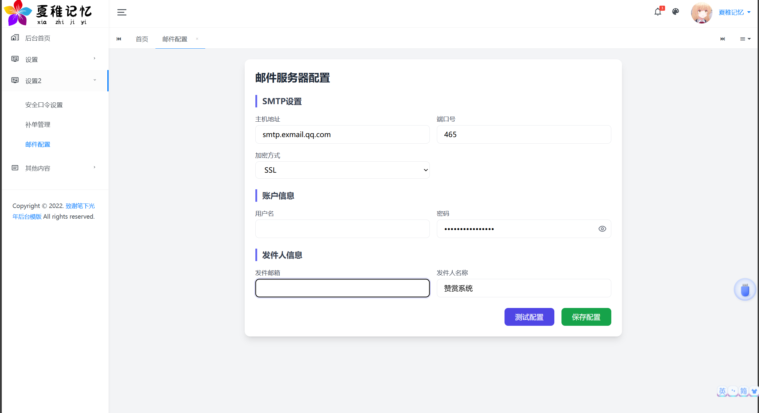 ### 5. 后台邮件发送配置更新