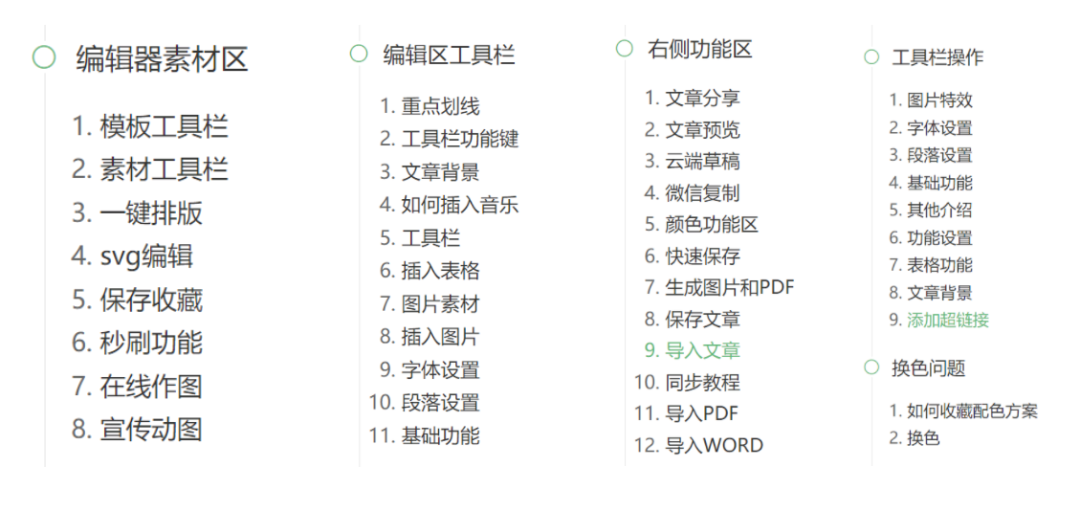 我前期都试用过,试用比较多的是96编辑器、秀米,使用下来最终选择了96编辑器。这个没有谁好谁坏,它们功能都差不多,我建议大家可以都去尝试下,找到你用得比较顺手的。它们的操作也基本一致,我以96编辑器为例讲解下几点常用到的功能。01