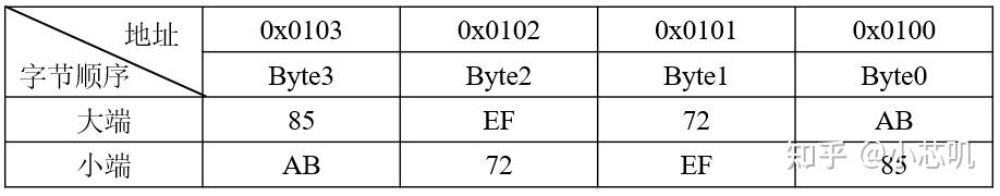 字节序:现在我要把0xAB72EF85存储到内存中,小端字节序会把高位存到高地址,地位存到低地址,而大端则相反具体可以看此图。