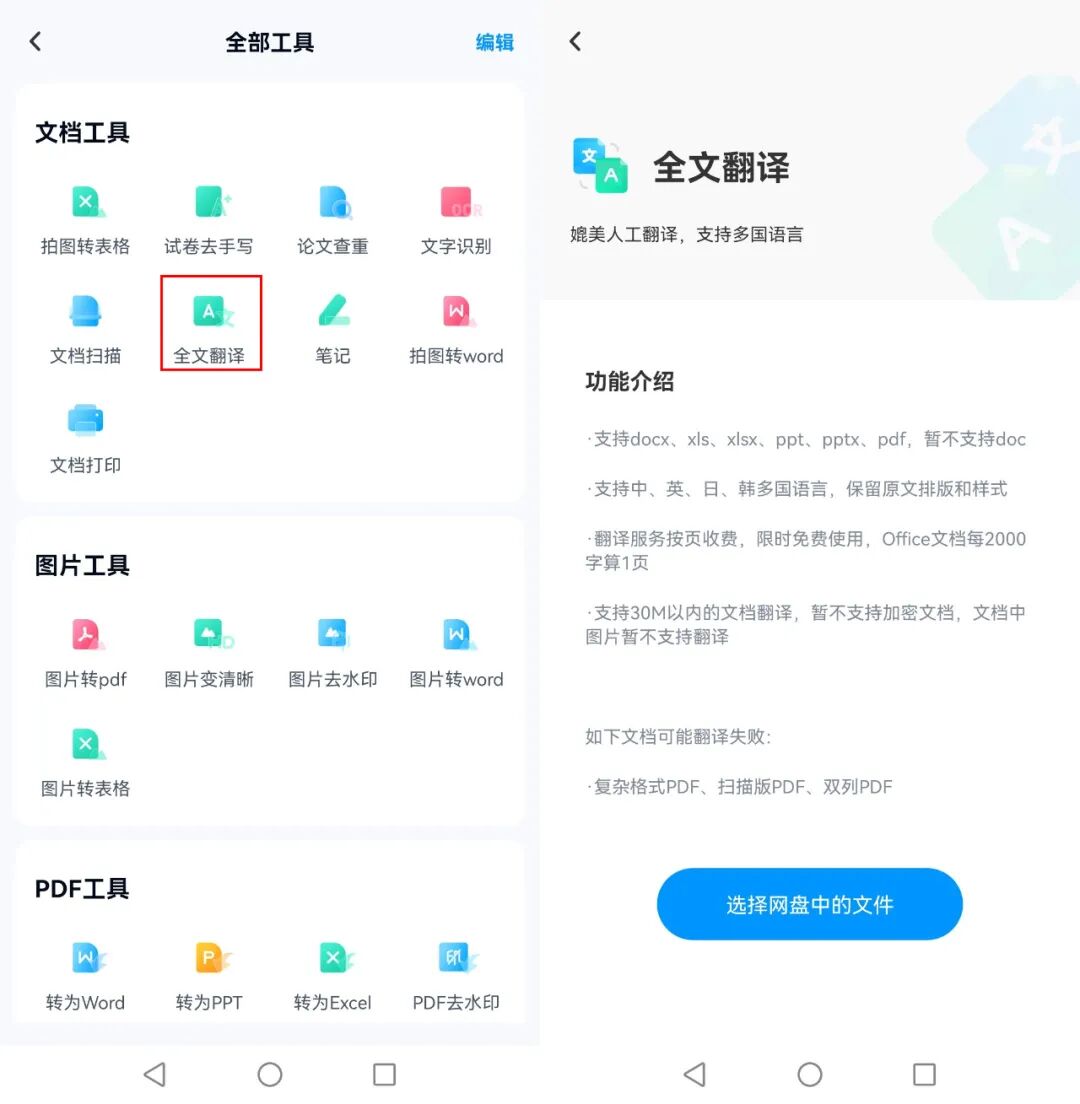 优点:①云端存储:这款软件提供了实用的云端存储功能,可以帮助我们轻松地管理和保存各种文档文件。当我们有需要进行翻译的文档时,可以将其上传到百度网盘,这样就可以随时随地访问和共享。②文档格式保留:无论是Word文档、PDF文件还是PPT演示文稿,这款软件都能够保留原始文档的格式和排版,确保翻译后的文档与原文保持一致。网易见外工作台