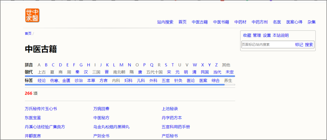 一个个人建立的中医相关的网站,主要包含中医古籍、中医书籍、中药材、中药方剂、名医、医案心得这几大块内容。文中收录的内容真不少,不过作者也说了,这个网站是个人爱好建立的,内容或有出入,仅供交流使用,如有疾病还是要及时就医。暂停一下~
