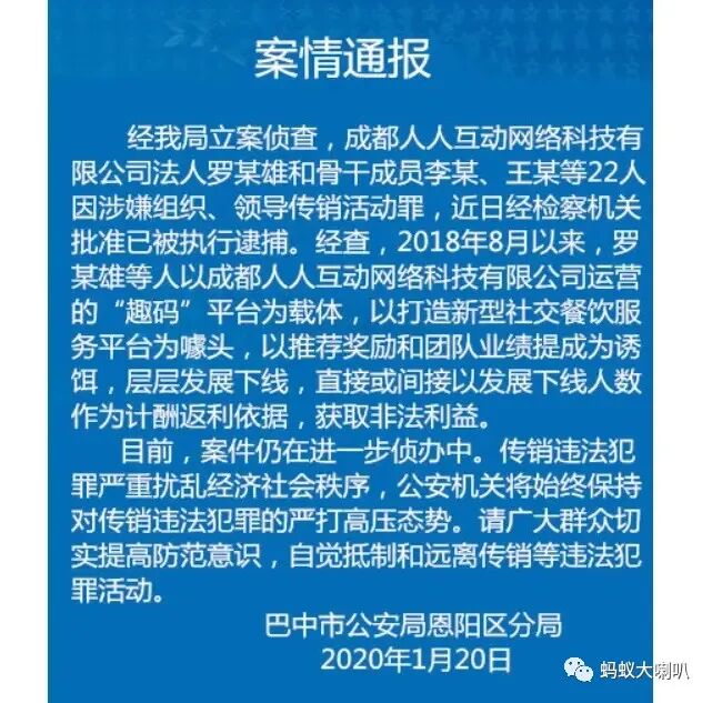 案例:成都某互动网络科技有限公司,因开发的系统含有传销功能,非法盈利被抓。