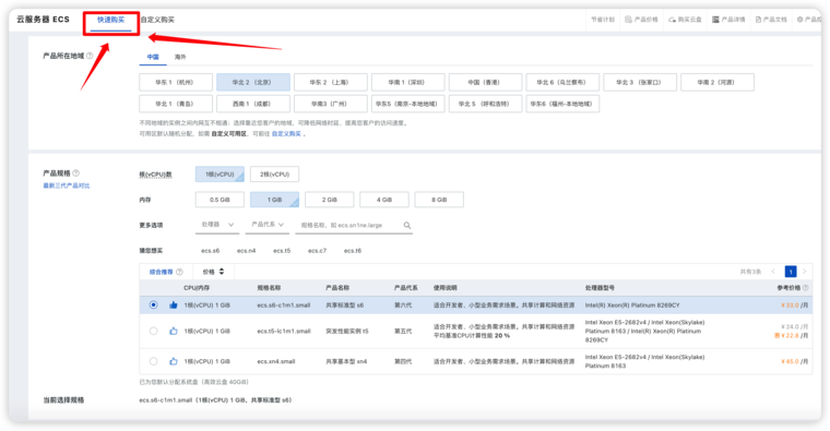 这里根据自己想要服务那个地区的用户,来购买相应的服务器.