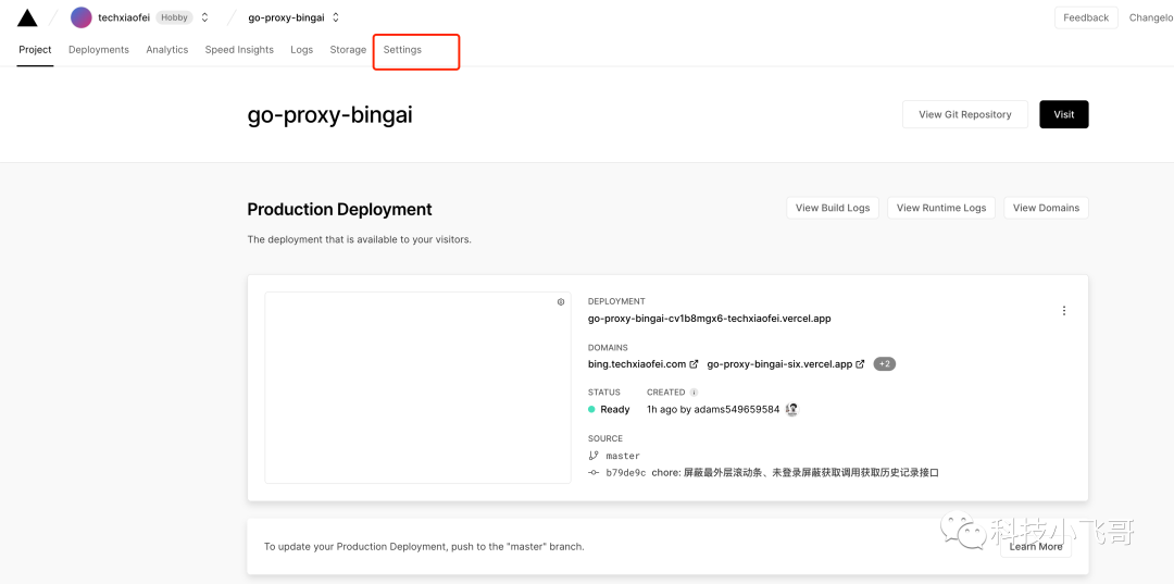部署完成之后我们就可以直接使用了,默认是使用的Vercel给我们提供的域名,但是这个域名有时候在国内访问受限,我们需要配置自己的域名。