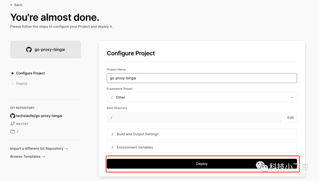 然后直接点击Deploy等待一段时间就可以完成部署。