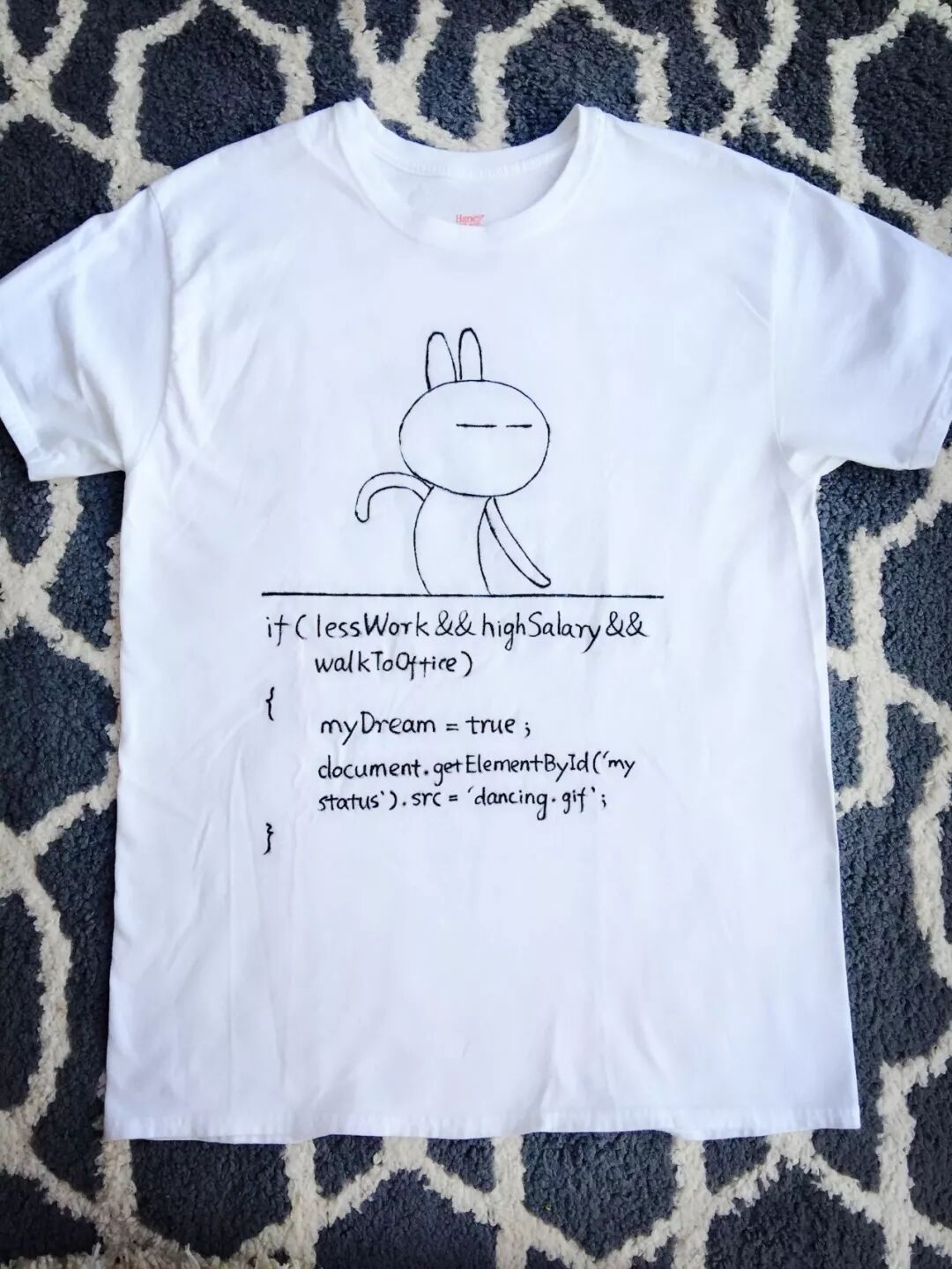 强迫症程序员专用“白”T,生活从来不和你做对,最多就是用记事本写前端代码的时候,任何元素都不会到你去到你想让它去的位置。背景色的黑它不是黑,T恤的白是真的白,文字的对齐方式也是左对齐,真好。