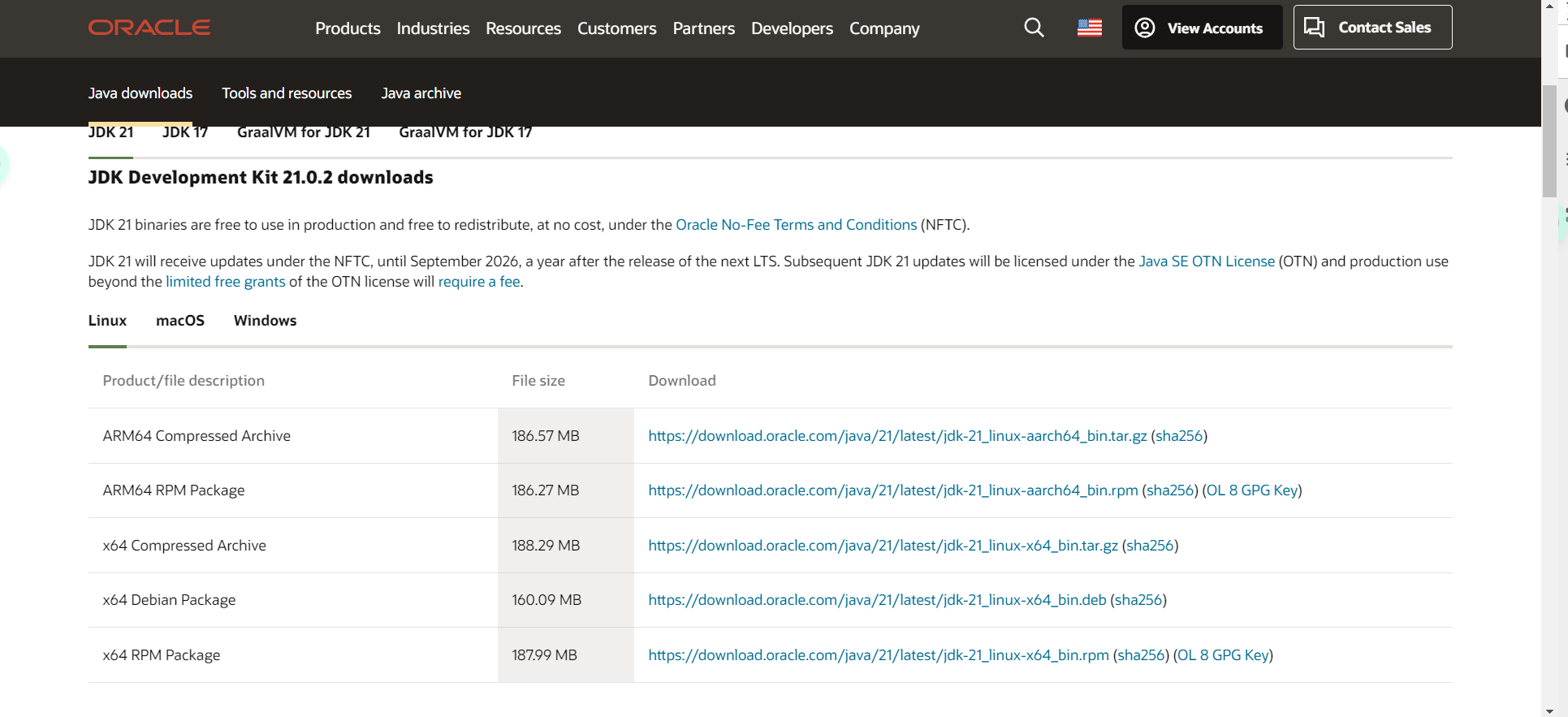 搜索JDK 21,确保从Oracle的官网下载最新的稳定版JDK: