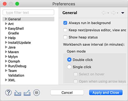 完成Eclipse的下载和安装后,启动IDE并进行一些基本设置以优化开发环境。通过选择菜单“Eclipse/Window”-“Preferences”,可以打开配置对话框,并对以下设置项进行调整: