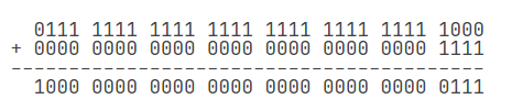 要解释上述结果,我们把整数2147483640和15换成二进制做加法: