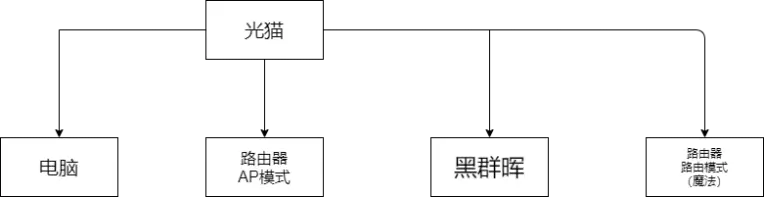 所以我的思路就是由光猫承担内网的路由功能,分配所有设备的内网IP,将连接光猫的电脑,群晖,路由器归在同一局域网下,因此家庭常用的路由器就需要使用AP模式。
