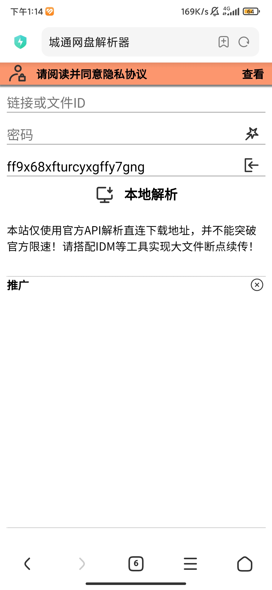如果你不想用城通网盘客户端的话,可以用这个「城通网盘在线解析器」通过输入资源分享连接,然后点击本地解析就会出现直连下载地址,可以用支持断点续传的下载工具下载。