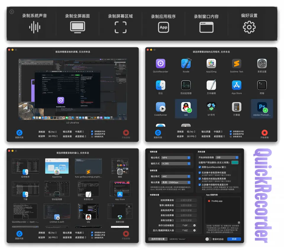 多功能轻量化、高性能的 macOS 屏幕录制工具「QuickRecorder」据介绍软件大小仅 4MB 左右,无任何累赘功能,支持窗口录制, App 录制等模式; 支持窗口声音内录, 鼠标高亮, 隐藏桌面文件等功能。