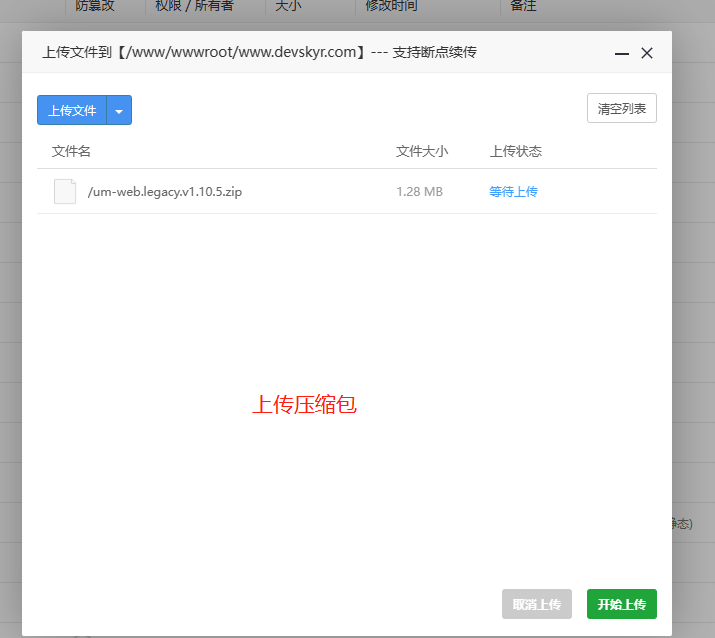 将压缩包上传后解压压缩包,会得到一个文件夹