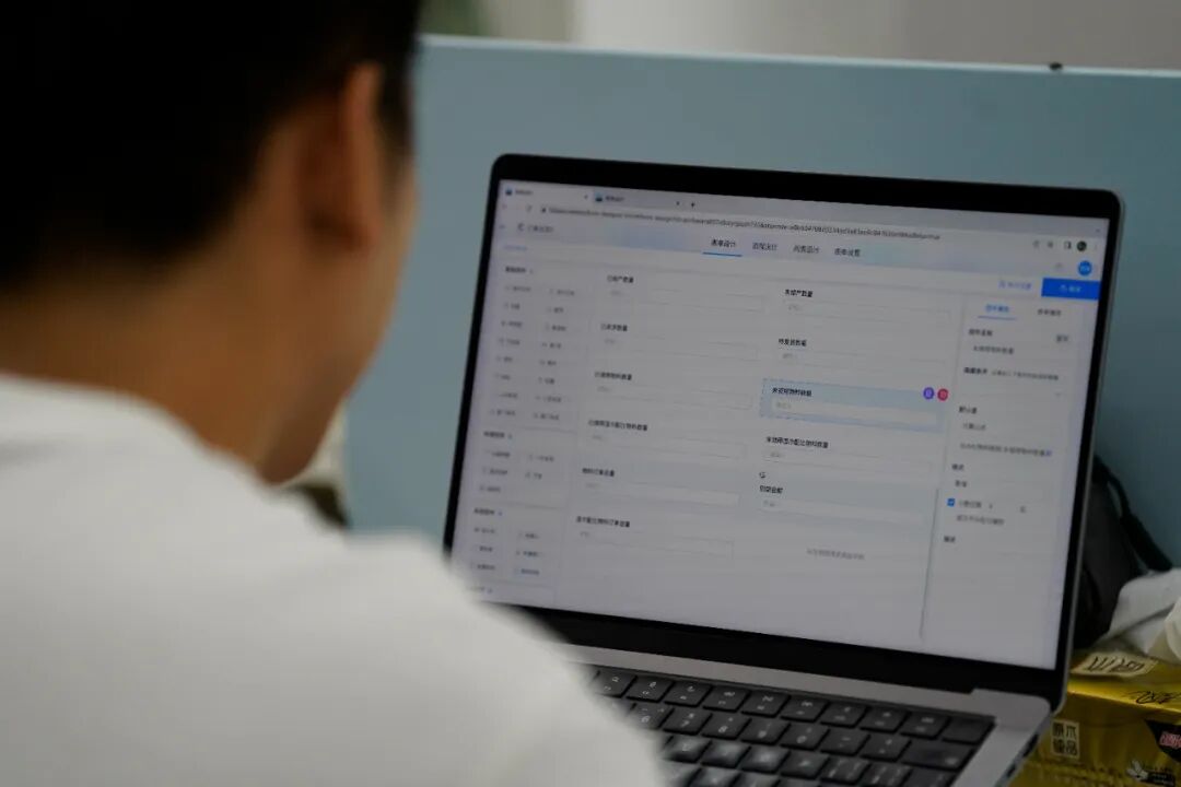 鑫牧思员工在为客户设计低代码流程鑫牧思赶上了钉钉补贴政策的尾声。李健刚入场时,补贴按人头算,用的人越多,补贴越多。接着又进入漫长的疫情时期,当地教育局要做线上授课,他们就帮忙做停课不停学的接口;核酸检测公司来给园区做核酸,手动采集录入慢,容易出差错,他们就连夜研发一个平台。补贴和疫情慢慢结束,而数字资产则留了下来。当然,技术普惠的理想状态远未达到。低代码降低了技术门槛之后,服务商的一个重要命题是,如何触达更多企业?“我接触到大量企业,也接触政府客户,发现政府现在特别想帮助企业发展。他们需要一个翻译官,那我就把政府的语言翻译成企业能听懂的语言。”李健打开钉钉,一个名为“保定市万人助万企”的数字平台出现在我们眼前,它连接了2万余名干部,包联7万余家企业,涵盖企业信息、诉求转办、政策解读等等,一目了然。李健把服务商视作政府与企业之间翻译官:“我们就做一个平台把他们串在一起,而且又是我家乡,我也不想做一个没用的平台,就踏踏实实做一个好的,真正地改变环境。”陈耀键也有他自己的办法,经历了初期的冷清后,他决定尝试线上投放方式,打广告,“其实也是没底的。”2021年8月份,陈耀键接到第一个单子。一家自来水厂材料商找到他们,“他的客户是分布在各个地方的自来水厂,人工安排发货、路线,效率非常低。”陈耀键用低代码给他们搭建了一套业务管理系统、物流系统,添加物联网卡,线上管理客户、合同以及订单。
