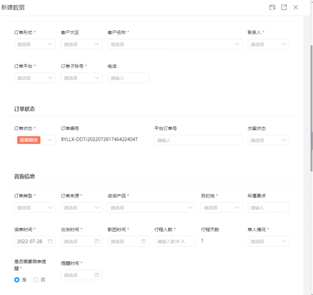 有了订单管理系统后,一个订单的咨询、接单、跟进、完团全流程,每一步都有数据记录在册。系统还设置了跟单提醒,提醒销售主动追踪潜在客户,做到不落下每一单。