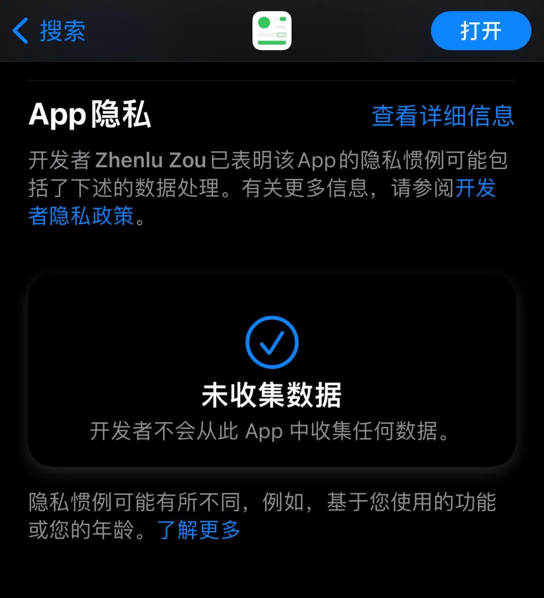 根据目前 AppStore 的隐私提示,归空并不会收集任何的个人信息,也不需要联网使用,所以大家不用担心这个 App 存在监守自盗的情况。