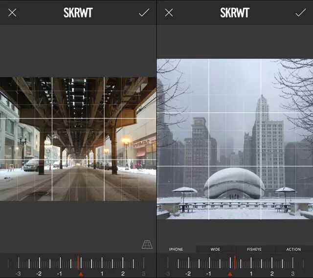 这是一款专门做‘校正镜头畸变‘的app,里面包括了水平校正、纵向校正、镜头透视校正等实用小功能。如果你喜欢拍摄建筑,却被手机镜头奇怪变形所困扰,如果你拍了一张构图不错,而水平线稍微没对齐的照片,这款应用一定会对你有所帮助。SKRWT目前只有苹果版,在App store里卖1.99美元(约合人民币12元)。