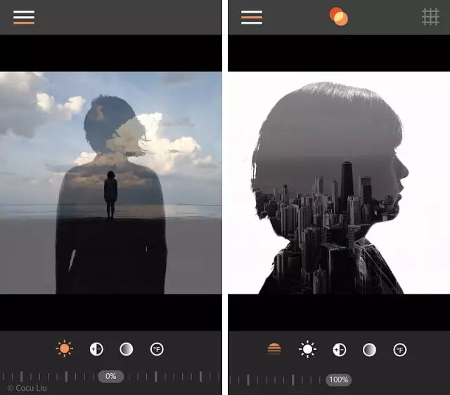 Union是个专门做双重曝光的小工具,我最近发的重曝作品就是主要用这个应用做的。除了能叠加曝光两张照片,它还有个简单的蒙板工具,可以把图层里不需要的部分擦掉。我还常拿它和Mextures和VSCO Cam配合使用,效果都还不错。Union目前只有苹果版,在App Store里定价2.99美元(约合人民币18元)。