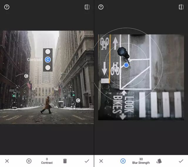 Snapseed是一款功能强大手机后期应用,可以看作是手机移动端上的Photoshop。这个app除了有剪裁,对比度,饱和度,亮度调整,锐化等常见工具之外,它还有手机后期应用不常见的‘选区调整‘,可以照片的指定区域做更精准编辑。此外,它有个小工具(Spot Repair)去除照片上小面积瑕疵,另外这个app还提供了几套有趣的主题滤镜,比如‘怀旧‘、‘复古‘、‘移轴虚化‘等。Snapseed在苹果的App Store和安卓系统上均为免费下载。