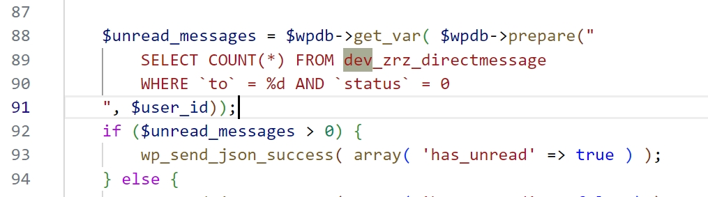 2.直接get_user_meta( $user_id, ‘b2_dmsg_unread’, true );就能判断了,根本不用去找zrz_directmessage这张表。