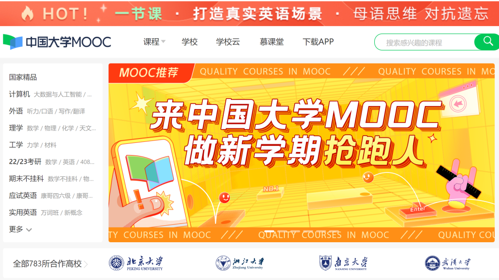 推荐理由:中国高校外语慕课平台汇聚了国内外各大高校的优质外语课程,免费并且丰富,可以直接搜索你想学习的外语课程,也可以利用网站的课程分类功能找到需要学习的外语课程。其中视频课程涵盖的语种包括:英语、日语、韩语等,视频课程方向包括:语言技能、商务外语、职业教育等。