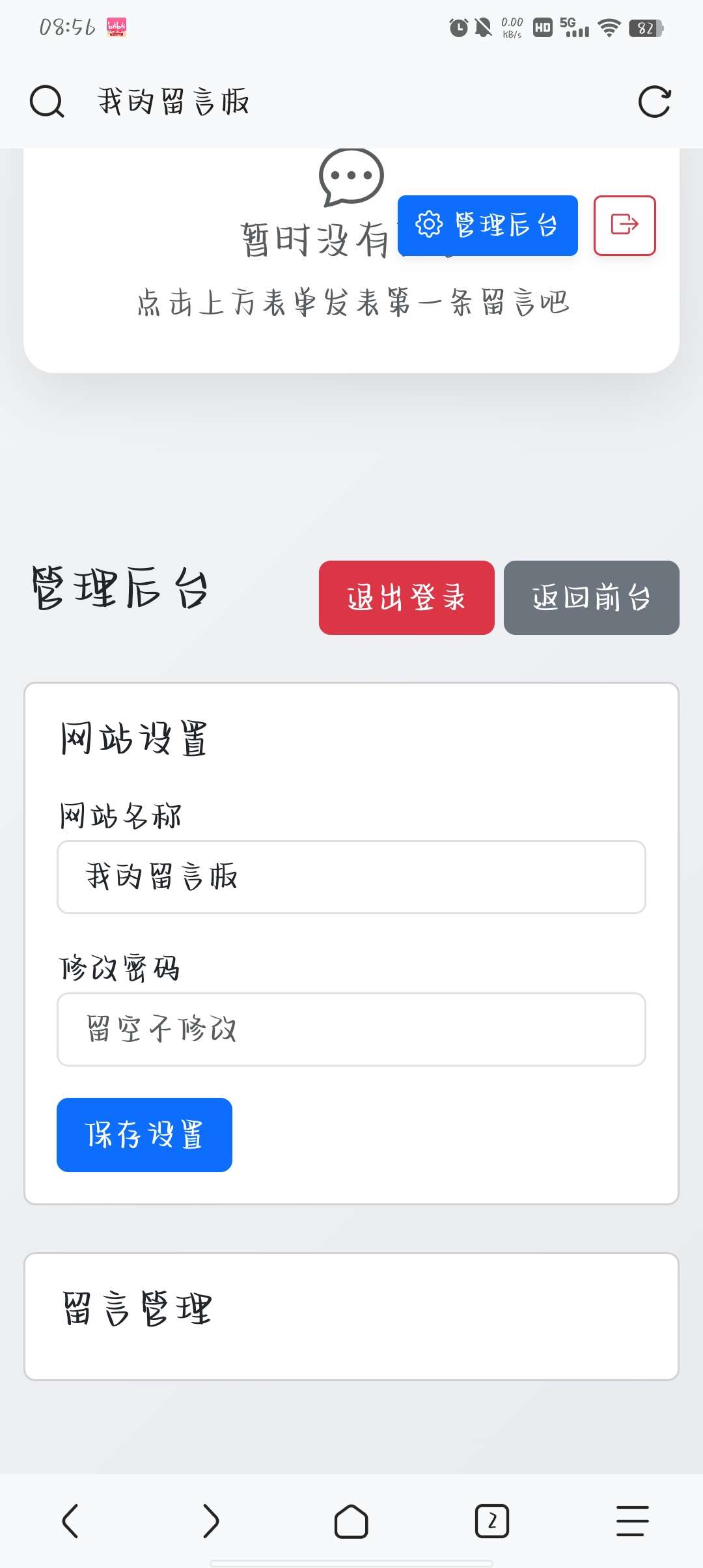 3.有一个简易的后台可以修改网站标题以及删除留言