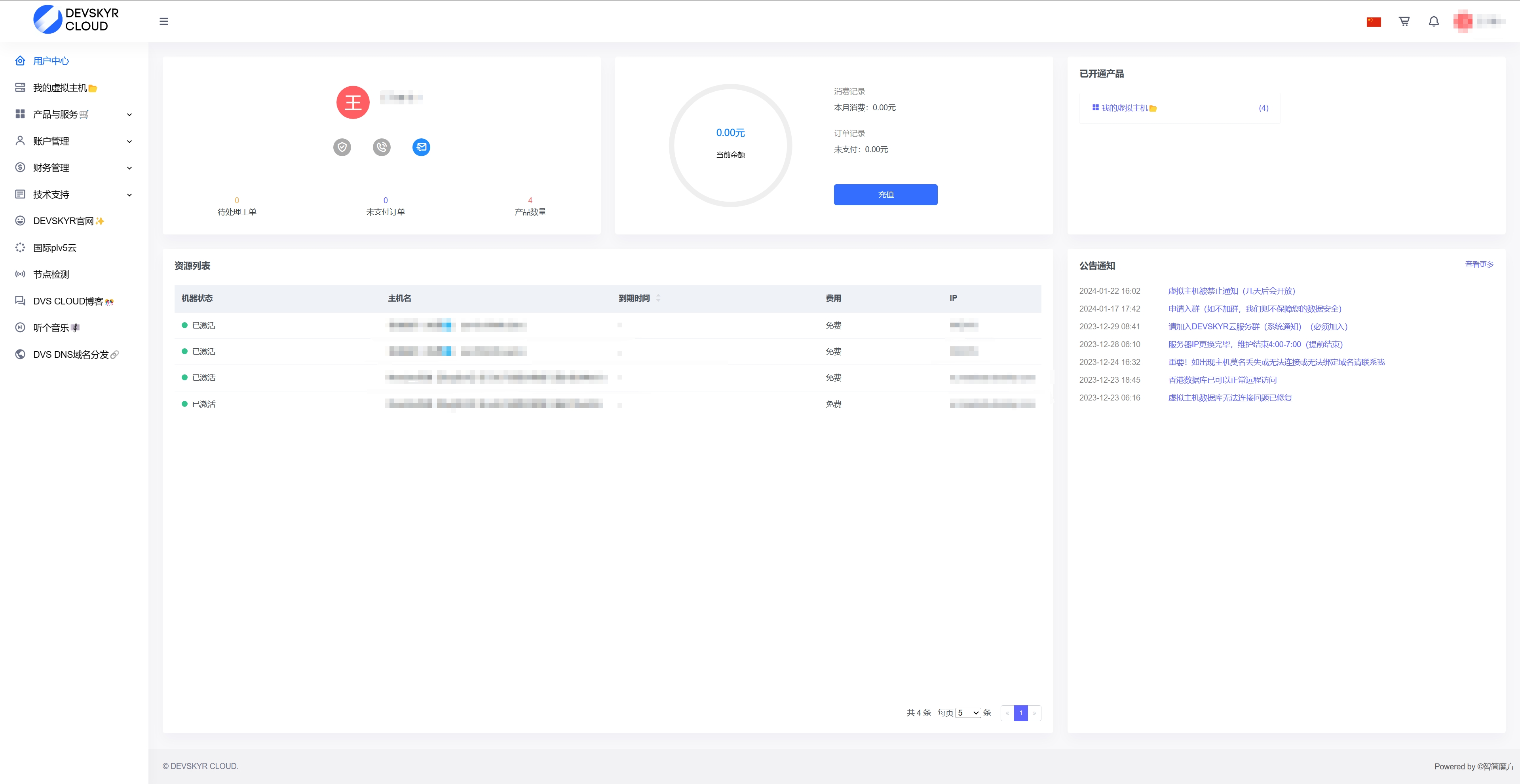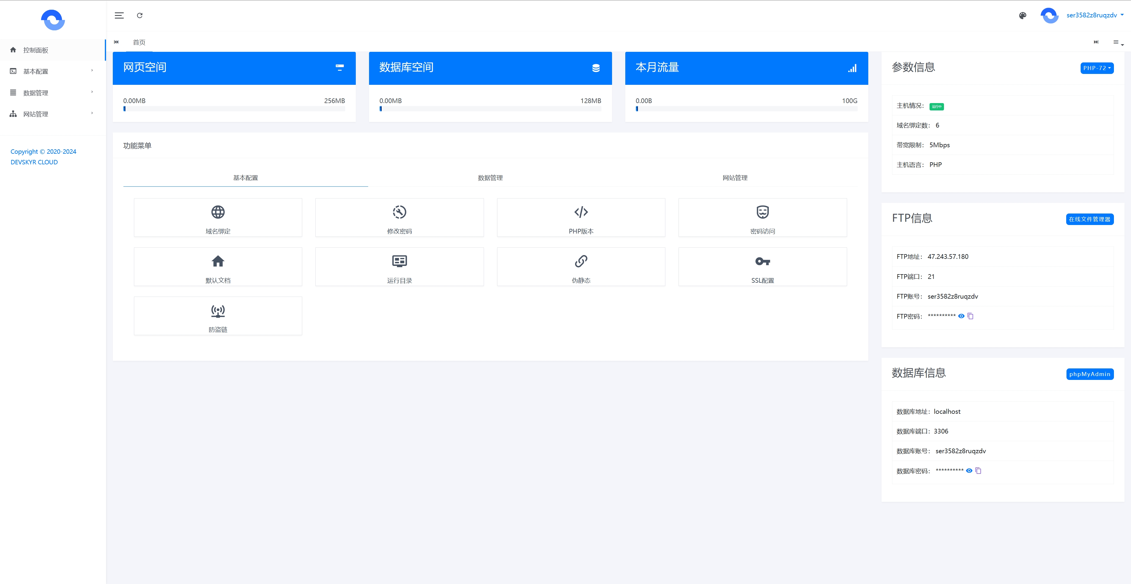 注册后即可看到下方图片,是一个虚拟主机的控制台;