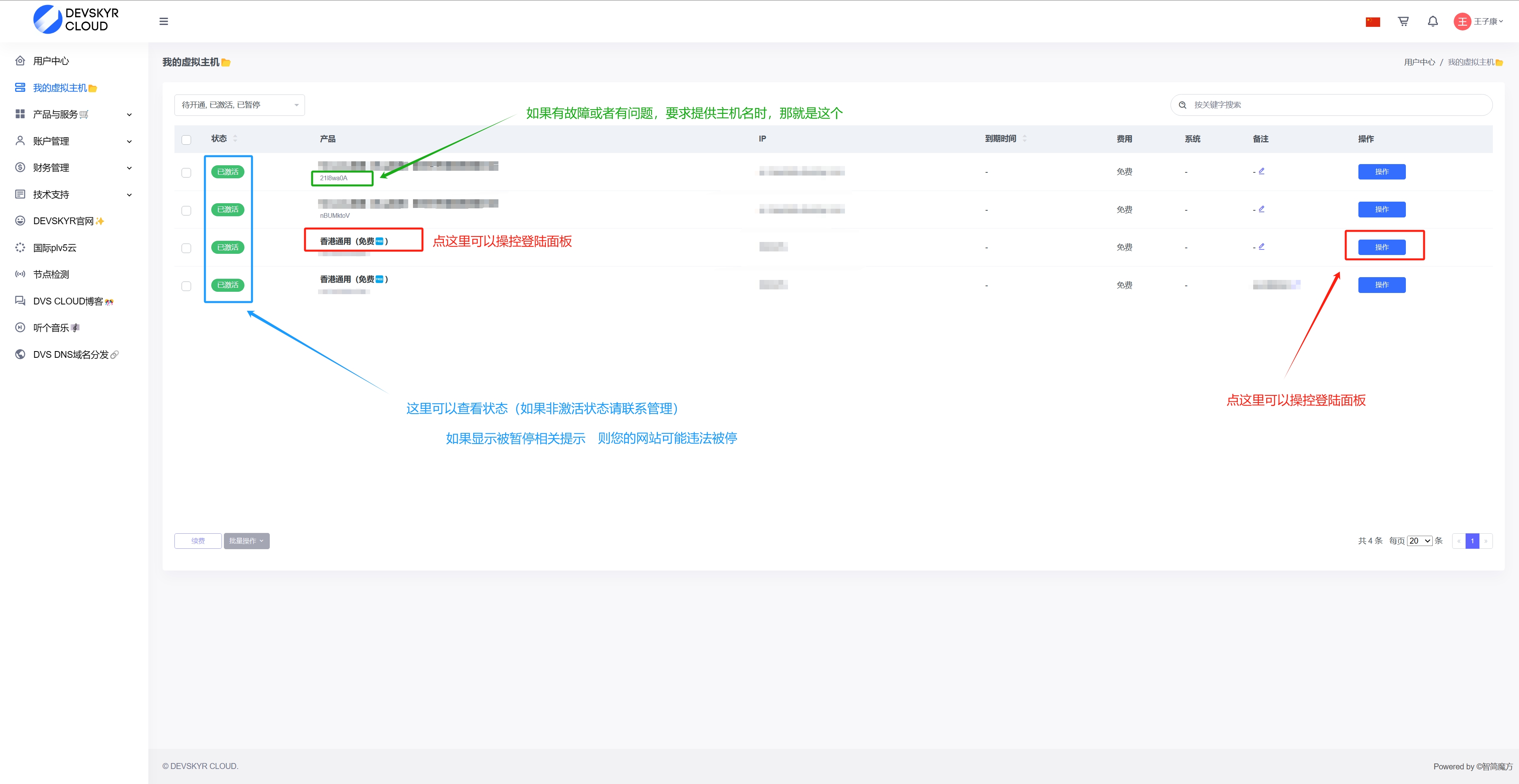 在此页面找到“产品与服务”(在左侧侧边栏即可找到)点进去后选择您所需的虚拟主机,点击购买即可(均是0元不要手续费和初装费);购买后点击左侧的“我的虚拟主机”即可查看到您所拥有的所有虚拟主机